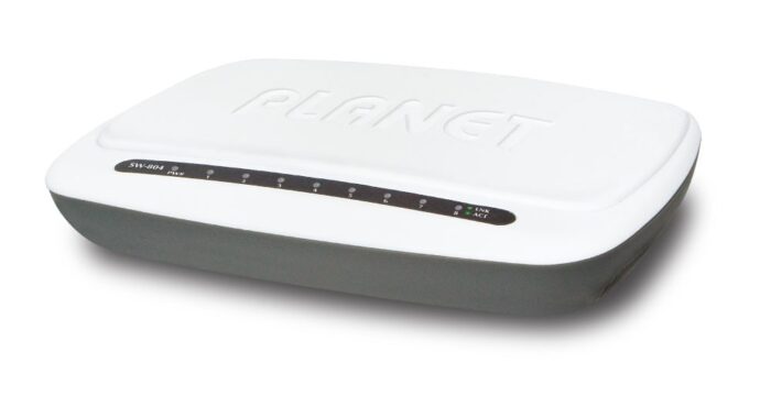 The PLANET SW-804 is a managed switch, featuring 8 Fast Ethernet (10/100) RJ-45 ports. It supports full duplex communication and can accommodate up to 1000 entries in its MAC address table. The switch boasts a switching capacity of 1.6 Gbit/s and adheres to networking standards IEEE 802.3, IEEE 802.3u, and IEEE 802.3x. It operates with a DC input voltage of 5 V, and the power is supplied through a DC-in jack. Additionally, the switch is designed to be wall-mountable for convenient installation.