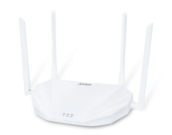 The PLANET Wi-Fi 6 11AX offers a wireless speed of up to 1800Mbps, ensuring high-speed internet connectivity. It features a Gigabit Ethernet LAN interface for fast wired connections. The product comes in a sleek white color and is equipped with LED indicators for LAN, Power, WAN, and WLAN, providing clear status notifications. Its antenna design is external, optimizing signal strength and coverage. The device is powered through a DC power source. Its dimensions are 234 mm in width, 148 mm in depth, and 31 mm in height, making it a compact and efficient networking solution.